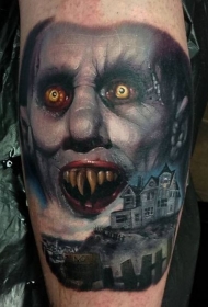 恐怖风格彩色吸血鬼与房子手臂纹身图案
