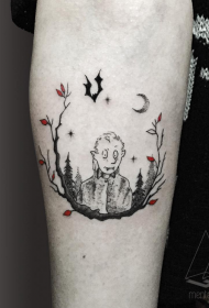 卡通风格的月亮和蝙蝠有趣的吸血鬼手臂纹身图案