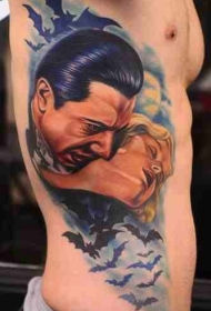 男性侧肋恐怖电影吸血鬼肖像纹身图案