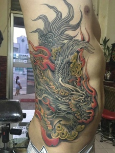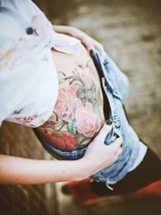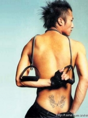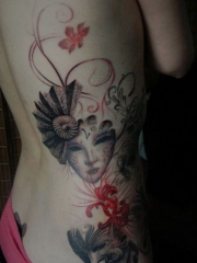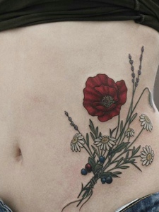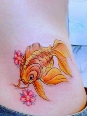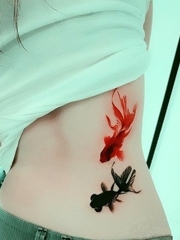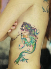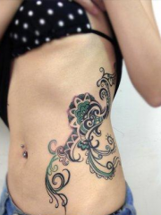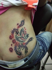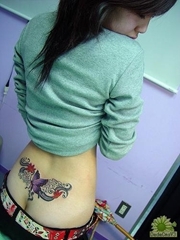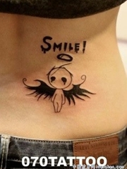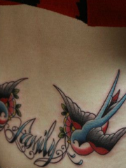 女生腰部漂亮的彩绘小燕子和字母纹身