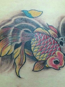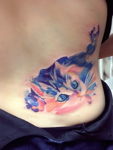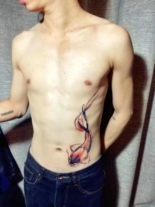 女性左侧臀部腰部上帅气的彩色龙纹身图片