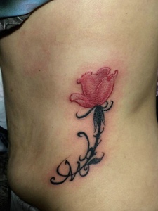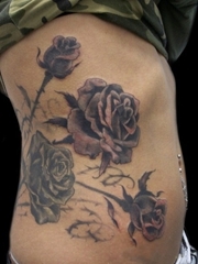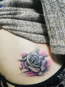 女性侧肋腰部上漂亮性感的玫瑰花纹身图案