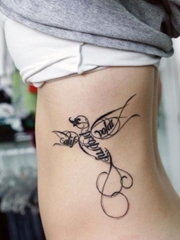女性腰部时尚漂亮的飞鸟图腾纹身