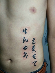 落在男士腰部上的个性汉字纹身刺青