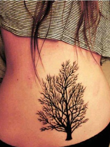 女生腰部后背上的一颗大树纹身刺青