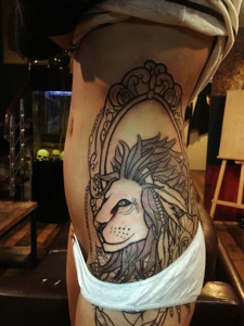 腰部到臀部的风格大狮子纹身图案