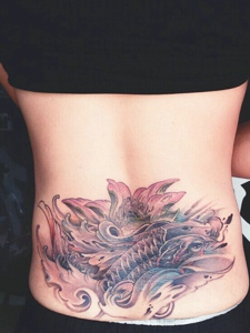 落在腰部后背的鲤鱼纹身图案