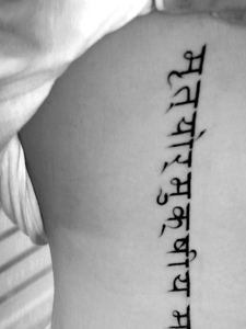 腰部上的梵文纹身图案非常好看