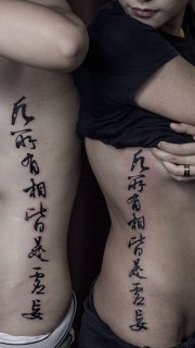 个性情侣腰部汉字名言纹身图