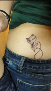 情侣个性腰部猫咪纹身