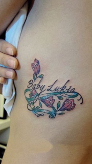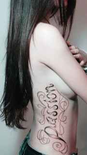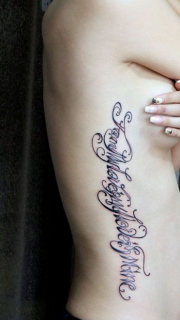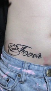 性感美女侧腰的大花体英文纹身