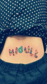 女生后腰彩色卡通英文字纹身