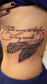 英文字和羽毛胸侧纹身