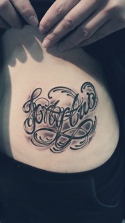 简洁腹部的花体英文字纹身
