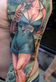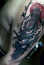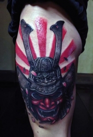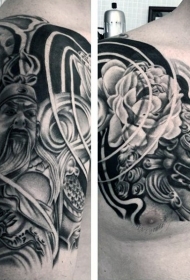 半甲亚洲风格的黑白战士与老虎纹身图案