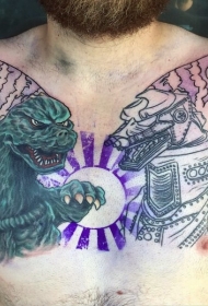 手臂亚洲风格的黑白哥斯拉纹身图案
