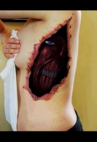 侧肋3D撕皮彩绘邪恶恶魔纹身图案