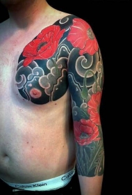 手臂亚洲风格的逼真彩色罂粟花纹身图案