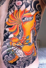 胸部亚洲风格的彩色邪恶九尾狐纹身图案