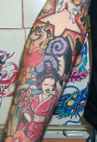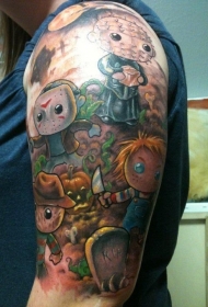 大臂亚洲卡通彩色恐怖娃娃纹身图案