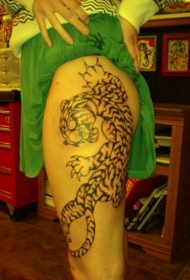 半甲亚洲风格的五彩写实老虎龙纹身图案