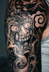 大臂黑色的恶魔般若纹身图案