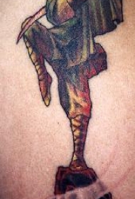 战士僧侣一条腿冥想彩色纹身图案