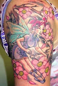 樱花树下的亚洲精灵纹身图案