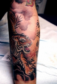 手臂优雅的亚洲风格老虎汉字纹身图案
