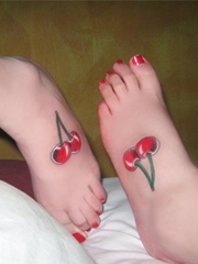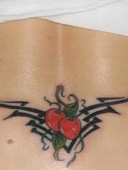 女性身上看起来是如此可口的水果樱桃纹身图案