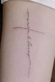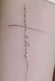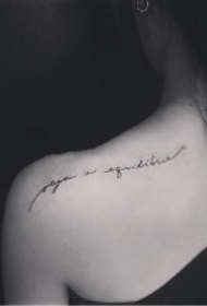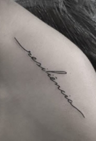 女生后肩和后背脊柱简约的一条线英文纹身图案