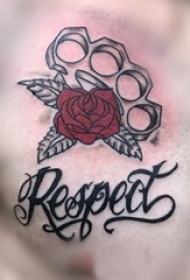 纹身胸部男 男生胸部英文和玫瑰纹身图片