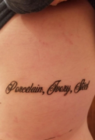 花体英文纹身 女生侧腰上花体英文纹身图片