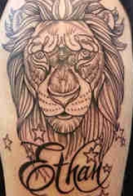百乐动物纹身 男生大臂上英文和狮子纹身图片