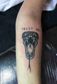 纹身蛇魔 女生手臂上英文和蛇纹身图片