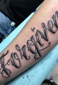 点刺纹身技巧 男生手臂上黑色的花体英文纹身图片