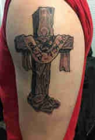 双大臂纹身 男生大臂上英文和十字架纹身图片