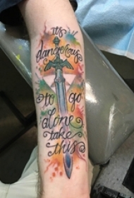 手臂纹身素材 男生手臂上英文和剑纹身图片