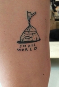 极简线条纹身 女生大腿上英文和卡通纹身图片