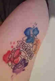 泼墨纹身素材 女生大臂上彩色的英文纹身图片