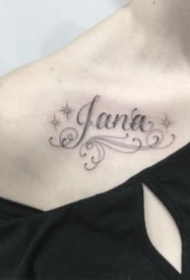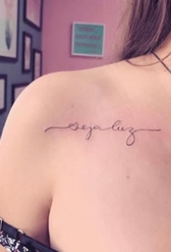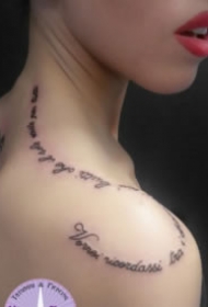 漂亮的女生肩部英文字母纹身图片