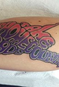 花体英文纹身 男生小腿上彩色的英文纹身图片