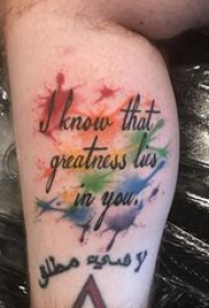 欧美涂鸦纹身 男生小腿上彩色的涂鸦英文纹身图片