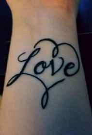 心形带英文纹身 女生手腕上黑色心形带英文纹身图片