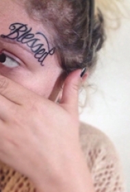 女生眉上黑色简单抽象线条有意义英文纹身图片