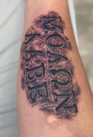 男生手臂上黑灰素描点刺技巧花体英文纹身图片