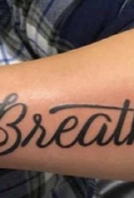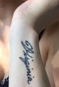 女生手臂上黑色简单抽象线条有意义的英文单词纹身图片