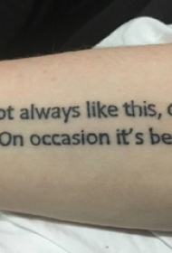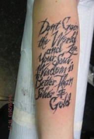 男生手臂上黑色线条文艺经典花体英文纹身图片