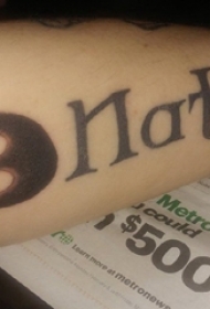 男生手臂上黑色点刺几何简单线条英文单词纹身图片