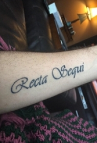 男生手臂上黑色简单抽象线条英文单词纹身图片